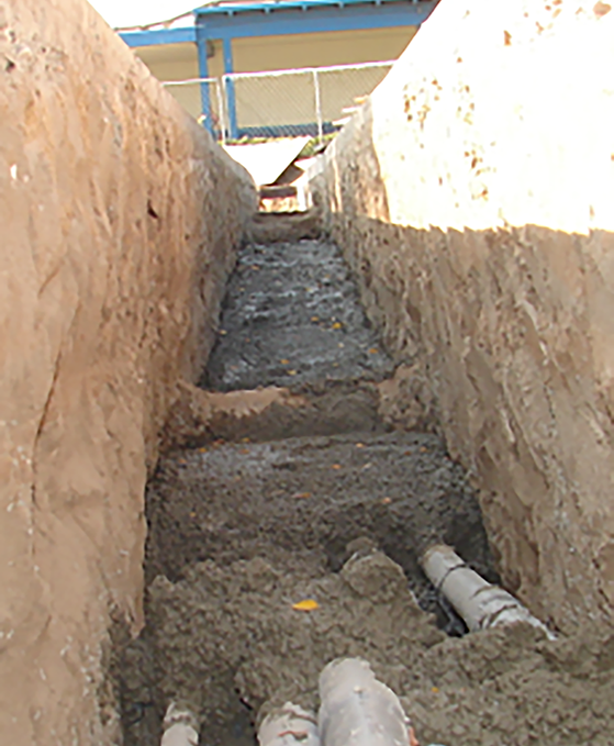 Trench work, and excavating. We can dig your trench for all your utilities. Including digging for grease collectors, and underground pull boxes. Encasing pipework in cement, and then covering with dirt and compacting. Spraying weed killer, and then topping with the either cement or asphalt